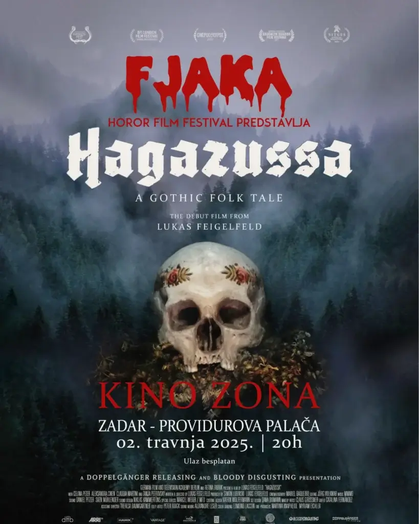 U srijedu, 2. travnja, u sklopu Kino Zone u Providurovoj palači u Zadru, bit će prikazan film Hagazussa (2017.) – tematski uvod u nadolazeći festival koji će se održati 11. i 12. travnja u Sv. Filipu i Jakovu. Ova projekcija ne samo da najavljuje bogat filmski i glazbeni program, već označava i prvu suradnju između Kino Zone u Zadru i DKC Kina u Sv. Filipu i Jakovu, čime se dodatno povezuju zajednice i proširuju filmske mogućnosti u regiji.
